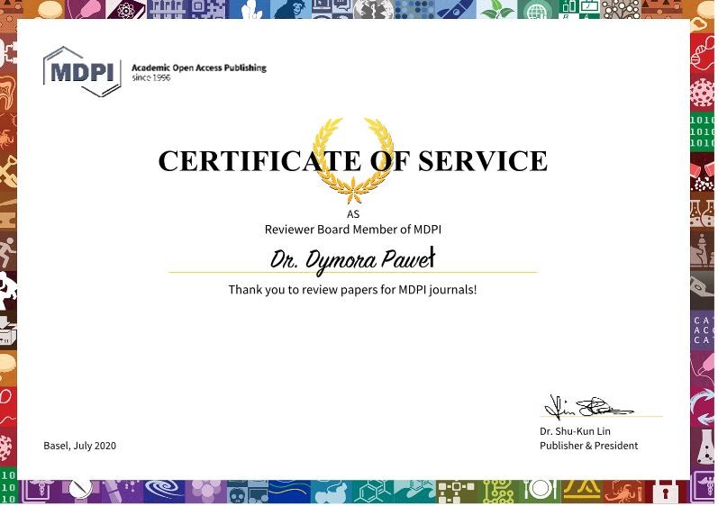 W lipcu 2020 r. dr inż. Paweł Dymora dołączył do zespołu recenzentów czasopisma MDPI Sensors - “Reviewer Board (RB) of Sensors”.