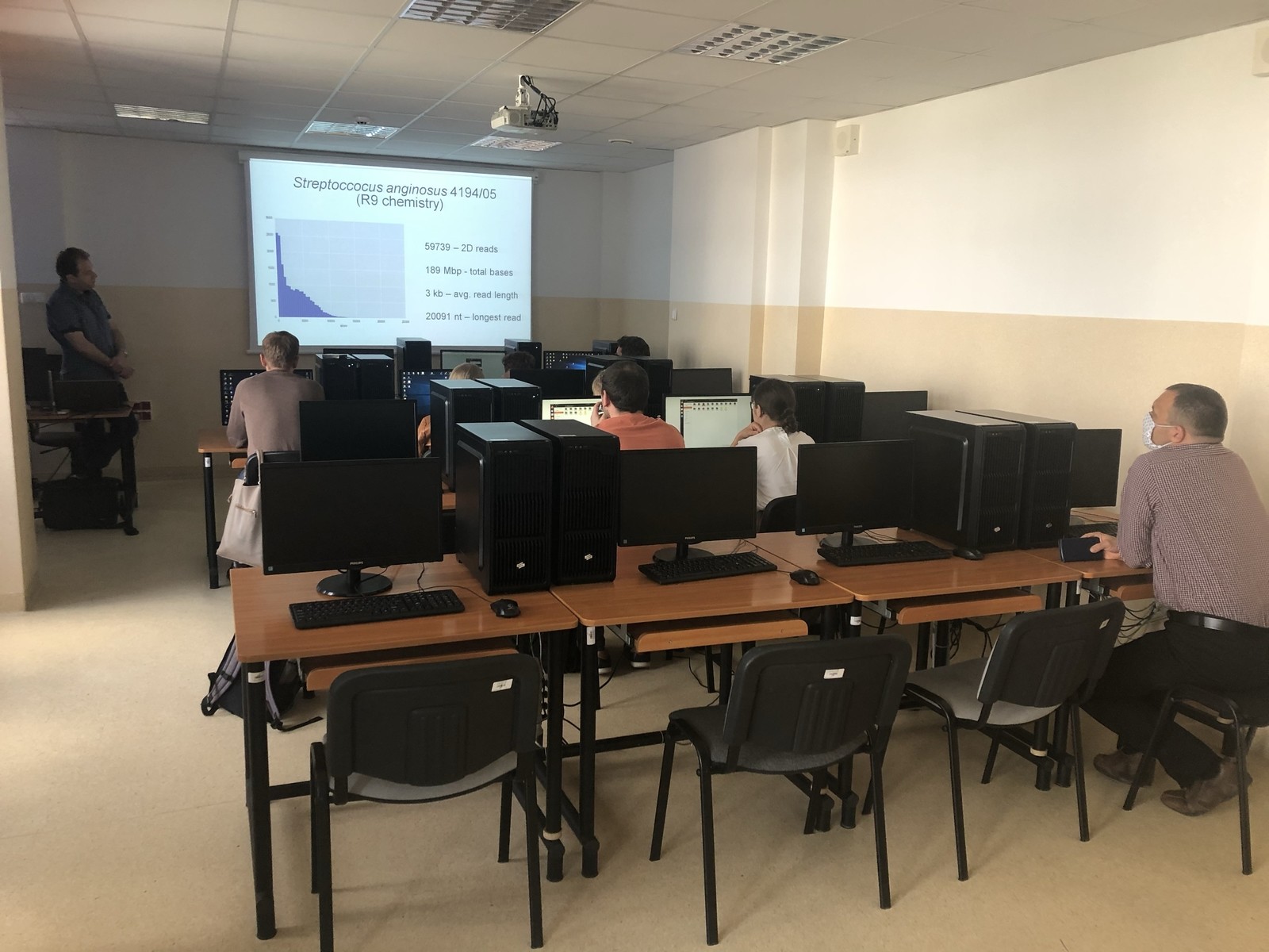W dniach 22-26.06.2020, w ramach realizacji projektu „Technologia Oxford Nanopore: optymalizacja enzymów oraz analizy danych genomicznych pod kątem zastosowań komercyjnych” został przeprowadzony pierwszy eksperyment sekwencjonowania DNA z wykorzystaniem technologii Oxford Nanopore. Eksperyment podzielono na dwie części – doświadczalną realizowaną w Zakładzie Biotechnologii i Bioinformatyki Wydziału Chemicznego oraz bioinformatyczną wykonaną w Zakładzie Systemów Złożonych Wydziału Elektrotechniki i Informatyki. Sprawne przeprowadzenie sekwencjonowania, jak również prawidłową analizę uzyskanych danych, nadzorował mgr Jan Gawor z Pracowni Sekwencjonowania DNA i Syntezy Oligonukleotydów Instytutu Biochemii i Biofizyki PAN. W realizację eksperymentu byli zaangażowani m.in.: dr Marta Sochacka-Piętal, dr Michał Pietal, mgr Małgorzata Semik, mgr Michał Wroński, dr inż. Dominik Strzałka, mgr Magdalena Totoń, inż. Michał Ćmil i mgr inż. Anna Czmil. Niezbędnej pomocy organizacyjno-technicznej udzielił także dr hab. inż. Mirosław Tyrka, prof. PRz. Materiałem wyjściowym w części doświadczalnej było DNA z termotolerancyjnych oraz termofilnych szczepów bakterii z rodzaju Bacillus. W trakcie części bioinformatycznej eksperymentu wykonawcy projektu zapoznali się z szeregiem narzędzi bioinformatycznych (m.in. Bandage, Guppy, NanoPlot, Fly, Canu), wykorzystywanych w składaniu de novo genomów bakteryjnych. W wyniku przeprowadzonego eksperymentu uzyskano de novo kompletne sekwencje genomowe analizowanych szczepów Bacillus sp.