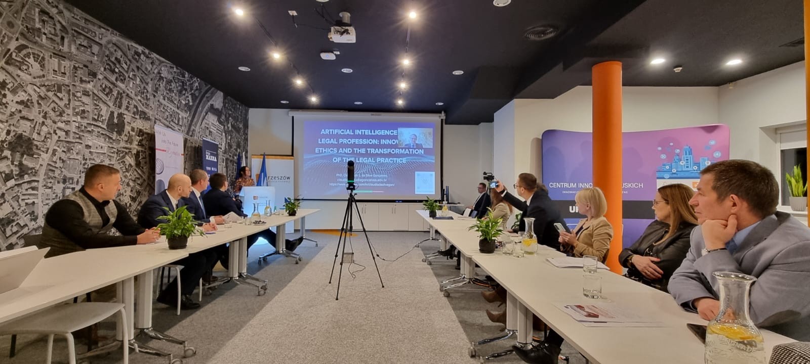 W dniu 13.12.2204 roku odbyła się międzynarodowa konferencja International Conference Artificial Intelligence and Responsibility. Konferencja miała charakter hybrydowy. W formie stacjonarnej obradowano w Urban Lab w Rzeszowie, natomiast pozostali uczestnicy m.in. z Portugali, Brazylii i innych krajów uczestniczyli online. Głównym celem konferencji było zapewnienie szerokiej, ponadpaństwowej debaty na temat przyszłych regulacji AI pod kątem jej odpowiedzialności, a także zagrożeń oraz potencjalnych możliwości dla środowiska Smart City.