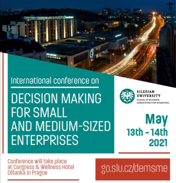 Konferencja International conference on Decision making for Small and Medium-Sized Enterprises (DEMSME 2021) to spotkanie profesjonalistów z uniwersytetów i przedsiębiorstw zainteresowanych teorią i zastosowaniami badań decyzyjnych z wykorzystaniem informatyki, matematyki, ekonomii i zarządzania biznesem oraz podejść marketingowych w praktyce MŚP. Wyniki konferencji zostaną opublikowane w materiałach konferencyjnych przesłanych do Web of Science i/lub w czasopismach partnerskich indeksowanych w Web of Science i/lub Scopus.