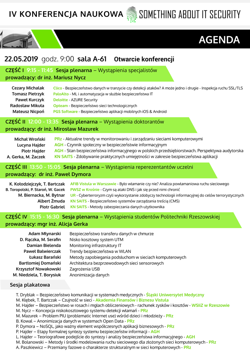 Konferencje została zorganizowana przez Zakład Systemów Złożonych Politechniki Rzeszowskiej, Oddział Podkarpacki Polskiego Towarzystwa Informatycznego oraz Koło Naukowe Something About IT Security.