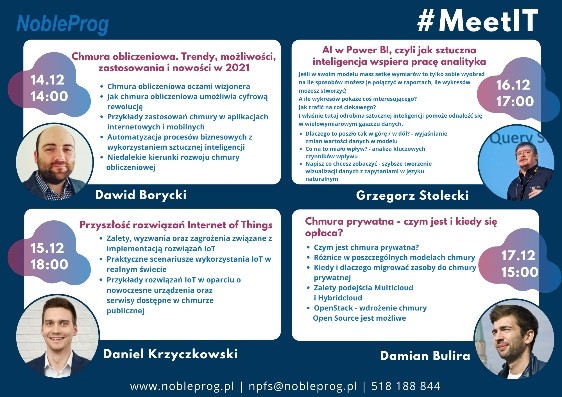 Firma NobleProg zaprasza na spotkania online ze specjalistami IT, poświęcone kierunkom rozwoju wiodących technologii, zmianom, trendom jakie przyniósł nam 2020 rok.