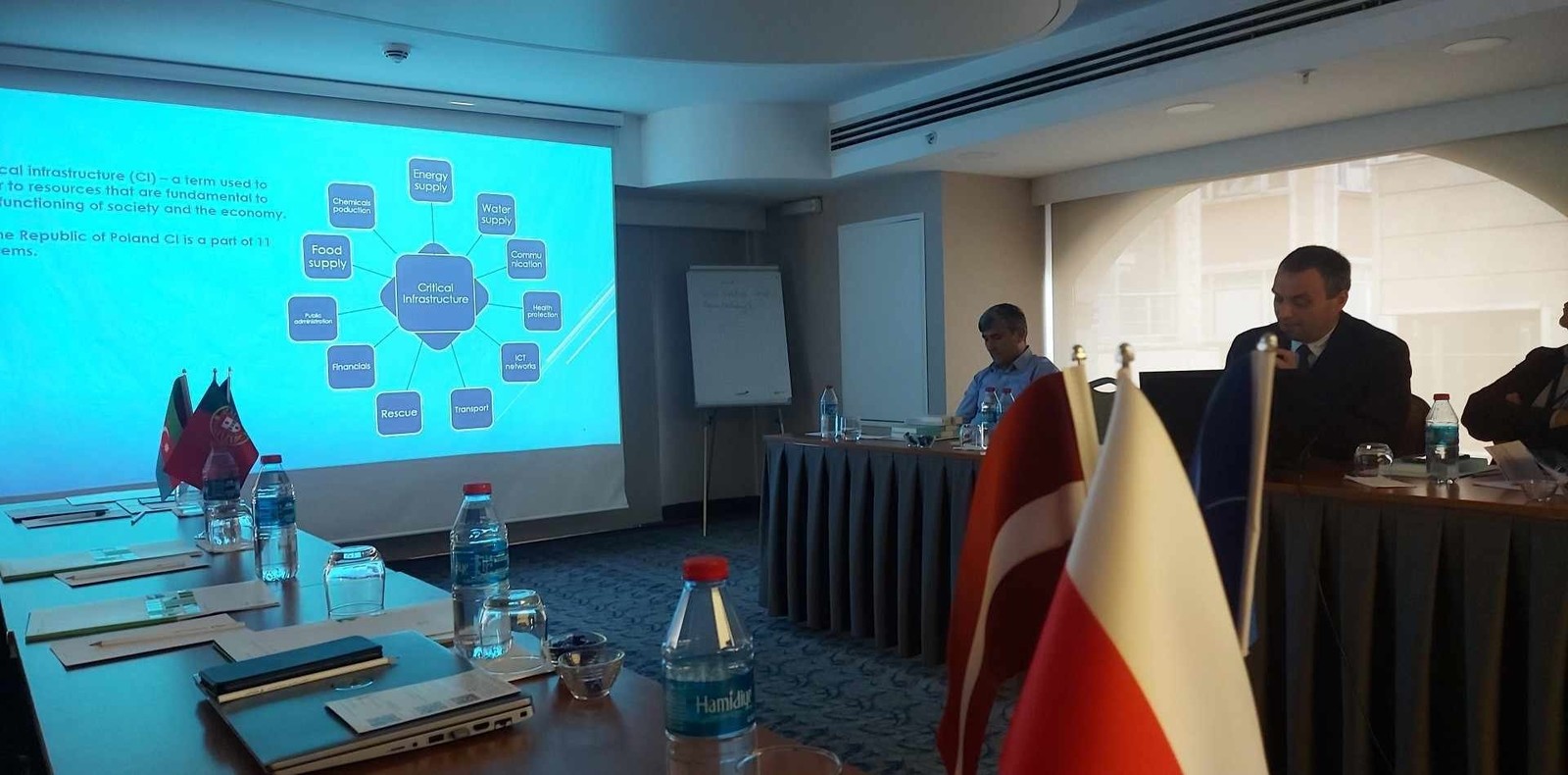 Prof. Jarosław Sęp przedstawił prezentację na temat: Analiza zagrożeń dla obiektów infrastruktury krytycznej. Prof. Piotr Koszelnik z prof. D. Strzałką przedstawili prezentację na temat: Potencjalne zagrożenia dla infrastruktury krytycznej w Polsce.