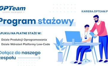Zapraszamy na spotkanie z firmą Opteam, która uruchamia specjalny płatny program stażowy dla studentów w Dziale Produkcji Oprogramowania oraz w Dziale Wdrożeń Platformy Low-Code.