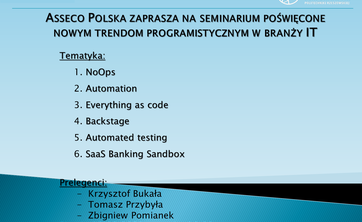 Asseco Polska zaprasza na seminarium poświęcone nowym trendom programistycznym w branży IT.