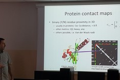Podczas referatu dr Piętal przedstawił autorski algorytm przewidywania struktur 3D białek oraz jego późniejszą modyfikację, w postaci procedury modelowania 3D struktury chromatyny.