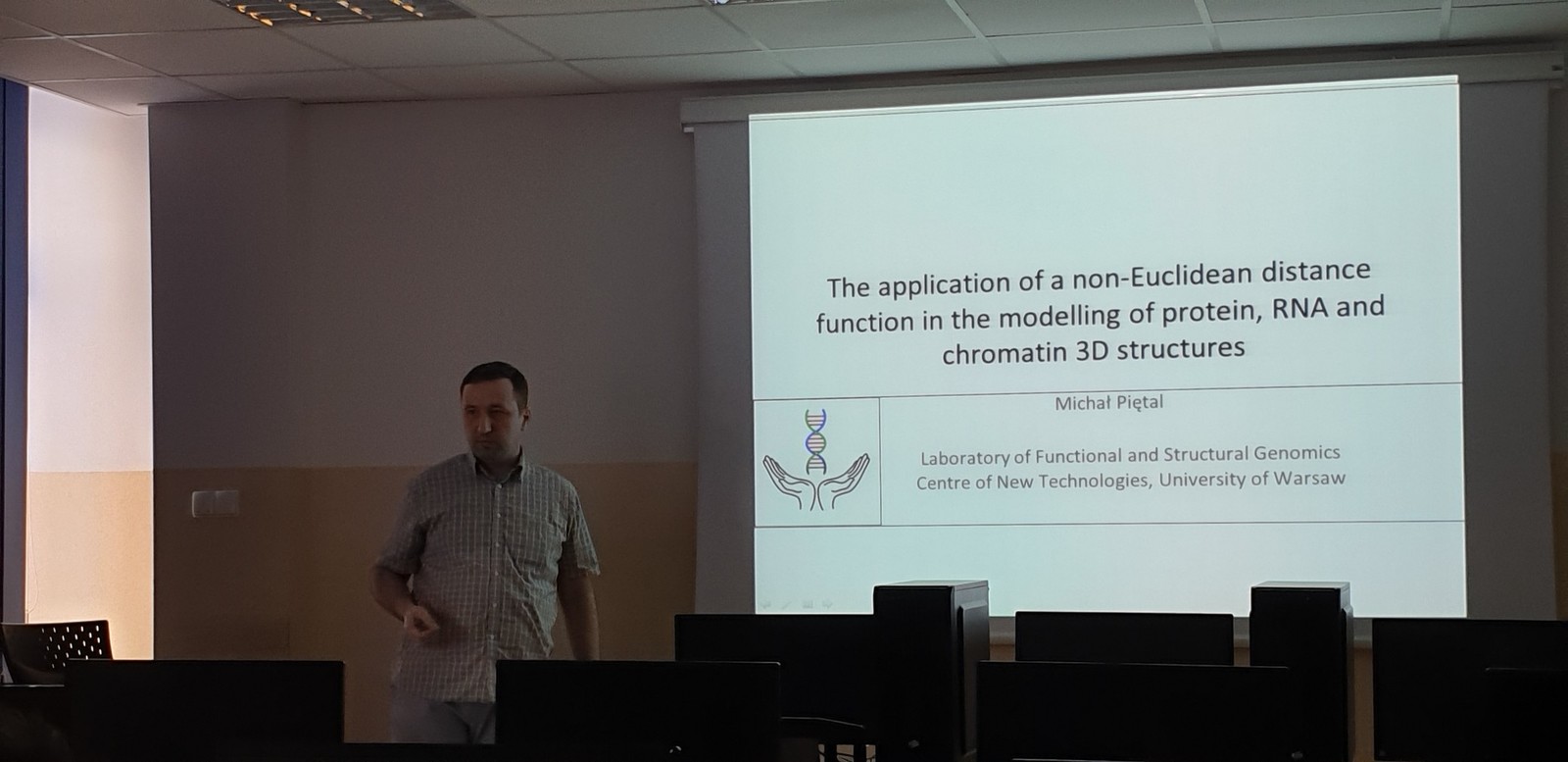 Korzystając z zaproszenia dr Michał Piętal wygłosił wykład pt. "Zastosowania nieeuklidesowej funkcji odległości w modelowaniu 3D struktur białek, RNA i chromatyny'