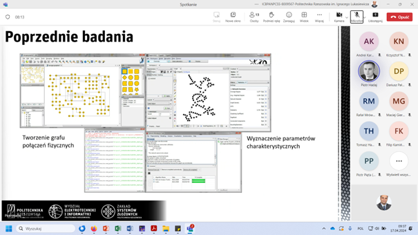 W dniu 17.04.2024 roku odbyło się seminarium on-line w Katedrze Informatyki Stosowanej AGH na którym mgr inż. Piotr Hadaj przedstawił postępy w rozwoju badań w obszarze tematu pracy doktorskiej.