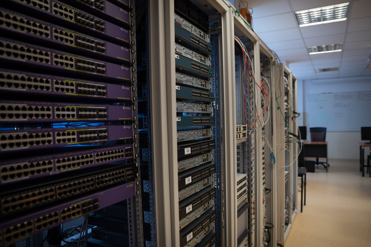Science and research and teaching laboratory. Research conducted in the laboratory of computer networks, converged systems and complex ICT systems concern a wide range of issues in the field of design and operation of complex communication systems, including effective and trouble-free data transmission in the environment of ICT networks. The laboratory conducts research in the area of: network traffic analysis, its properties and impact on network infrastructure; analysis of long-term processes occurring in computer networks; research on mechanisms of load balancing and maintaining the reliability of network infrastructure, as well as ensuring the resistance to damage of network structures carrying out data transmission in critical infrastructures; automating the process of managing distributed systems, optimizing the use of elements of the transmission system (eg tolerance of damage, load balancing). The laboratory also performs tasks in the design and configuration of network infrastructure based on both a homogeneous and heterogeneous environment of computer networks. As part of the work, various configuration scenarios are tested based on widely accepted standards and network protocols as well as proprietary and newly created mechanisms and network solutions. The scope of work and exercises relates both to issues related to Enterpise class networks, operator networks, as well as industrial ones used, among others in Industry 4.0 and energy. Laboratory equipment also allows you to test ready-made solutions before implementing them for production or operation in the proof of concept scenario. Most of the laboratory equipment is also used by students during classes, during the preparation of diploma theses and during student internships.