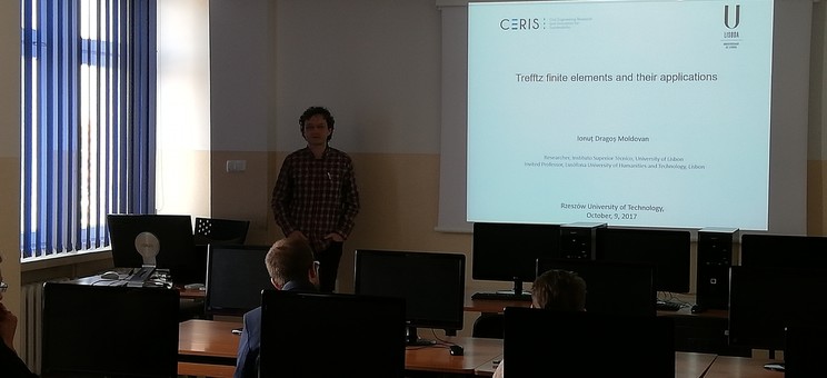 Professor Moldovan gave invited lecture on "Trefftz finite elements and their applications" and presented FreeHyTE application developed by him and his co-workers. The software is a platform for the implementation of hybrid and Trefftz finite element formulations for elliptic, parabolic and hyperbolic (initial) boundary value problems.