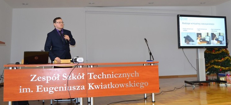 On January 11, M.Sc. Bartosz Kowal in the cooperation between Rzeszów University of Technology, and the ZST in Rzeszów gave a short lecture on the use of Virtual Reality in education and industry 4.0.
