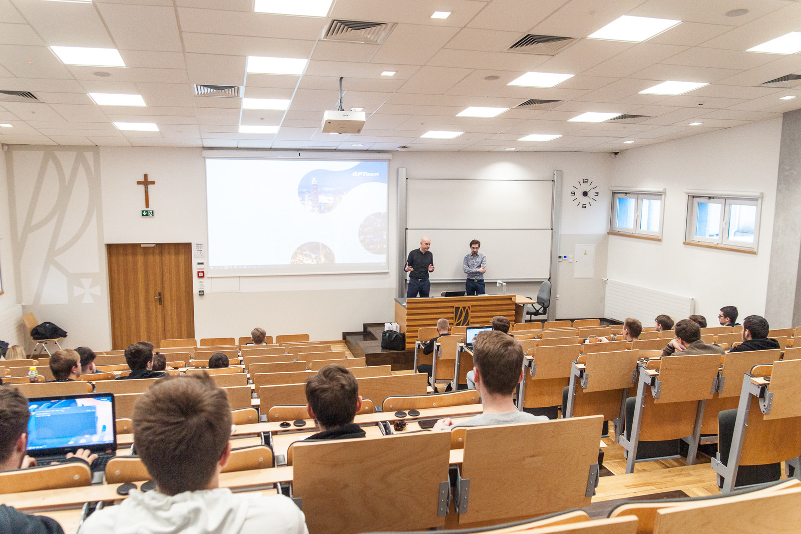 On Monday 25th of April, 2022 at The Faculty of Electrical and Computer Engineering took place a meeting with students of Rzeszow University of Technology and representatives of OPTeam S.A. During OPTimeeting #4 students learned a lot of interesting things related to the operations of OPTeam and the possibility of further cooperation. The company's representatives showed their solutions and talked about OPTibot, a virtual dean's office, which, based on artificial intelligence, will provide answers to interested students of a given faculty.