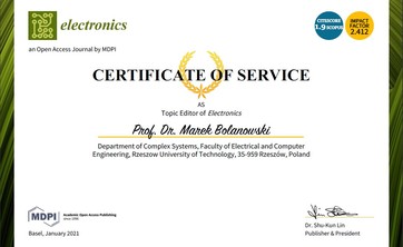 Ph.D. Marek Bolanowski prof. PRz has been invited to act as Topic Editor in the international, peer-reviewed MDPI Electronics magazine (ISSN 2079-9292, Impact Factor 2.412).