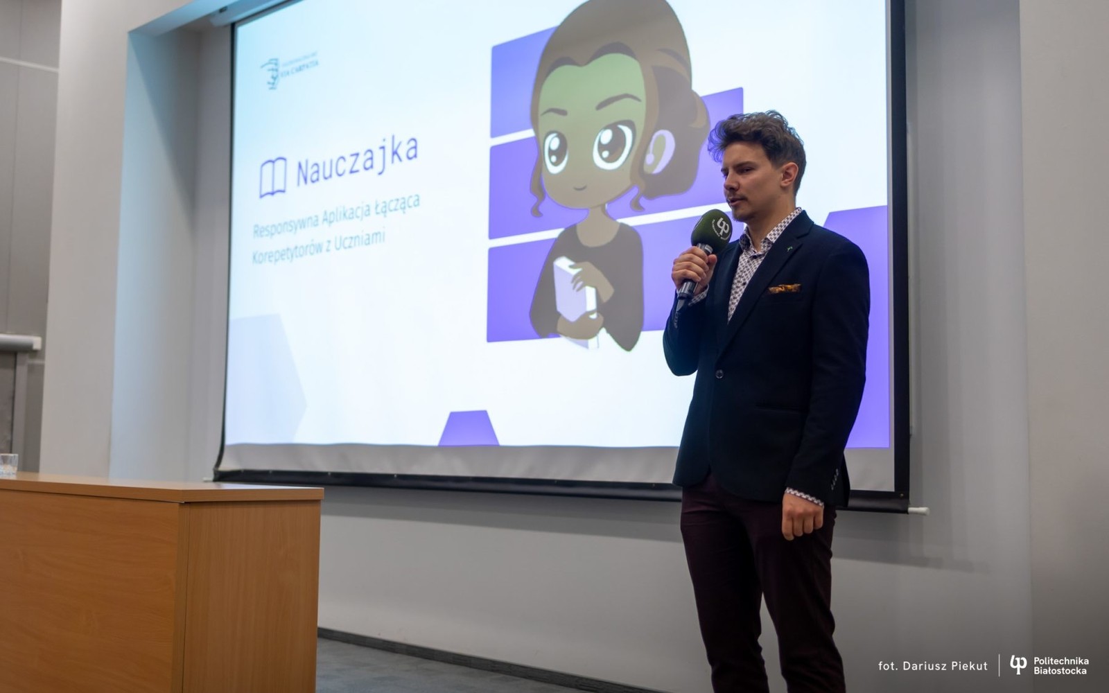 One of the participants was Krzysztof Demidowski, who presented the project "NAUCZAJKA – A Responsive Web Application Connecting Tutors with Students." The project received a grant in the "Via Express to Success" competition. During his brief presentation, Krzysztof Demidowski outlined the main goals of the project, which leverages modern technologies in education and highlights their potential in the teaching process.